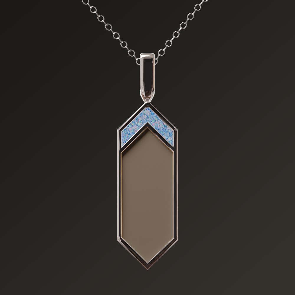 Ručne vyrábaný medailón zo striebra, do ktorého si môžete vložiť vlastný materiál s osobným významom. Sivá farba označuje miesto kde bude materiál osadený.