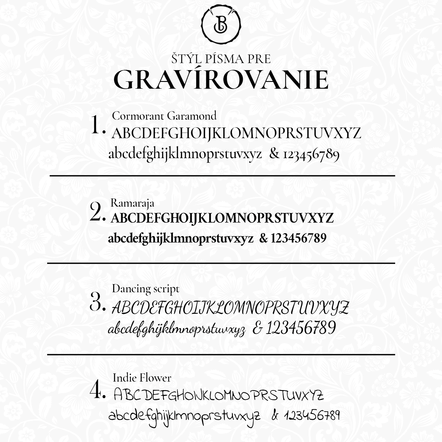 Ak sa rozhodnete pre túto možnosť, zakliknite v sekcii gravírovanie „áno“ a do poznámky v nákupnom košíku uveďte obsah želaného nápisu a preferovaný štýl písma.