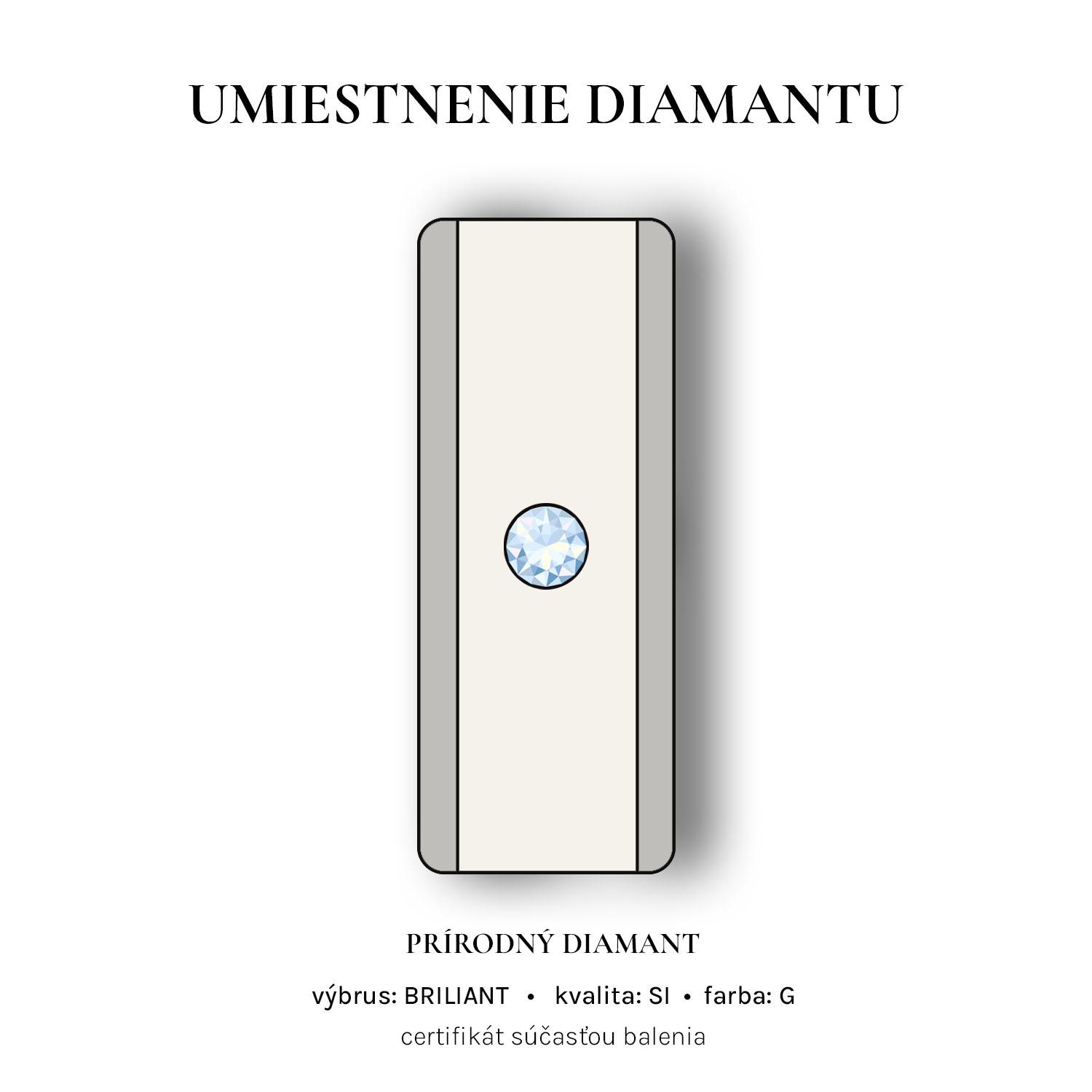 Do obrúčok je možné osadiť prírodný diamant s priemerom 1,25 mm (+40 €) alebo 1,75 mm (+60 €). Umiestnenie diamantu nájdete na nákrese v galérii.
