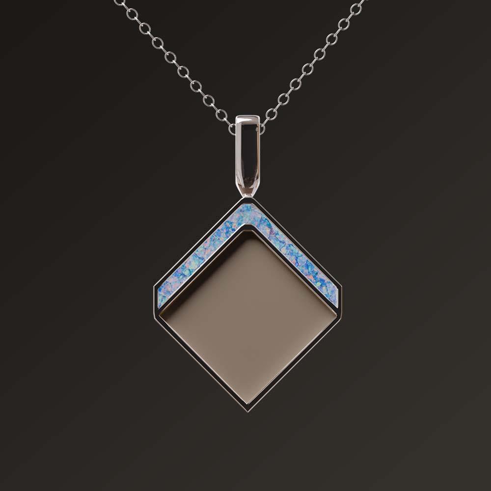 Ručne vyrábaný medailón zo striebra, do ktorého si môžete vložiť vlastný materiál s osobným významom. Sivá farba označuje miesto kde bude materiál osadený.