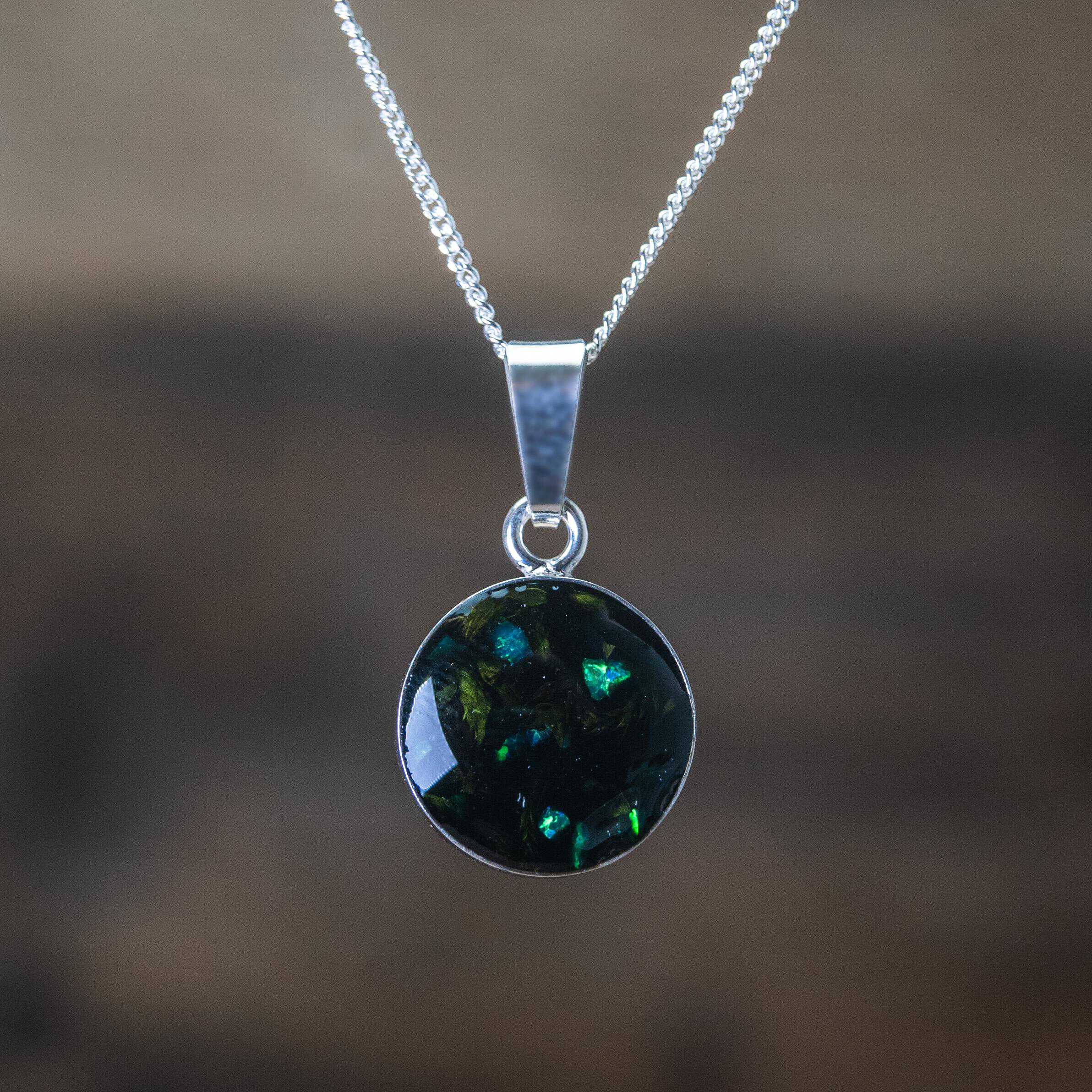 Tento jedinečný prívesok, kombinujúci jemný mach a opálové odlesky, zachytáva tajomstvo nočného lesa. Je symbolom odvahy čeliť neznámemu a nachádzať krásu v tme. Mach pripomína hlboké spojenie so zemou, zatiaľ čo opály prinášajú svetlo a nádej do najtemnejších chvíľ. Tento talizman vám pomôže premeniť strach na silu a neznáme na zdroj inšpirácie. Noste ho ako pripomienku, že aj v tme sa skrýva krása.