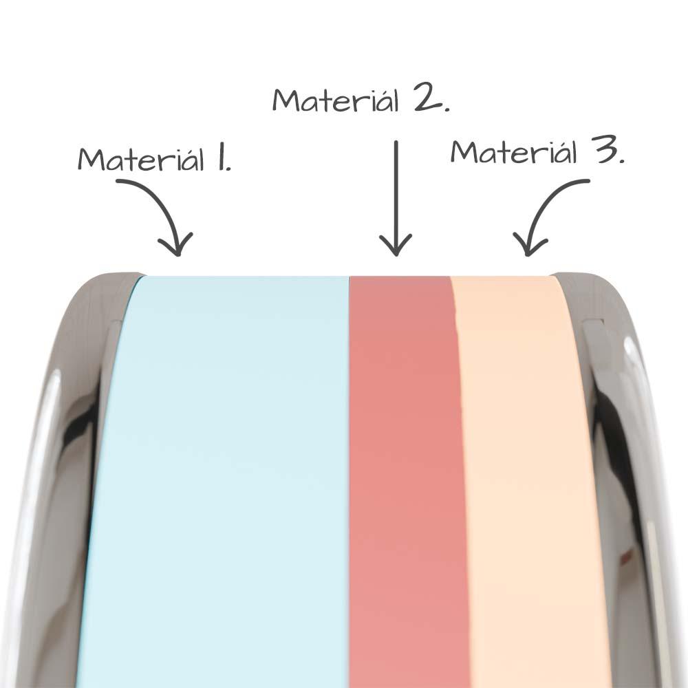 Materiály môžu byť aj rovnaké. Napr. ak chcete aby ste mali po stranách prúžky z rovnakého materiálu, zadajte materiál č.1 a č.3 rovnaký.