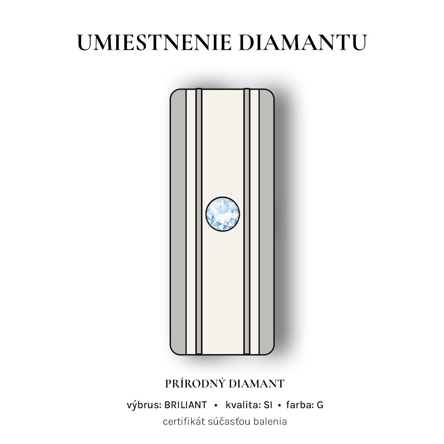 Do obrúčok je možné osadiť prírodný diamant s priemerom 1,25 mm (+40 €) alebo 1,75 mm (+60 €). Umiestnenie diamantu nájdete na nákrese v galérii.