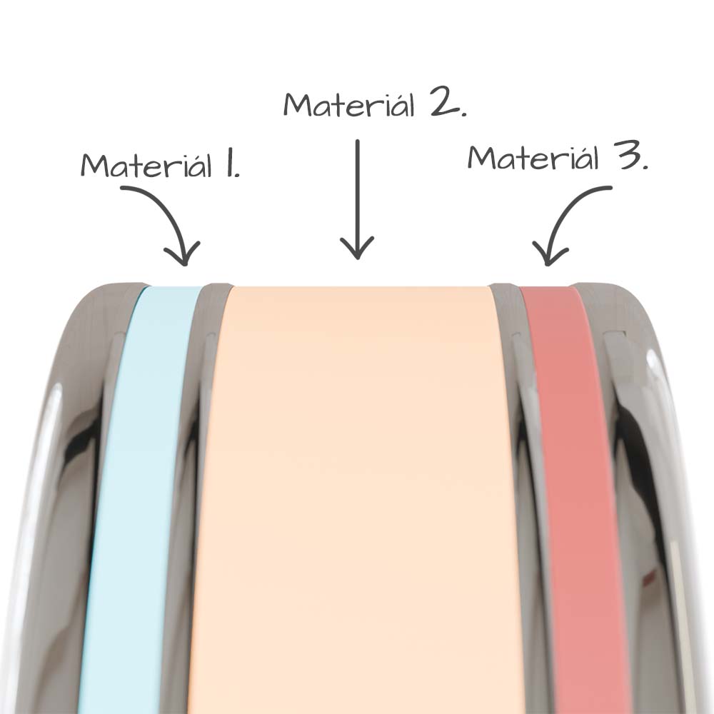 Toto jadro prsteňa je vyrobené z hypoalergénneho titánu najvyššej kvality a je určené na osadenie troch ľubovoľných materiálov, z toho dva po stranách tenšie a stredový materiál hrubší.